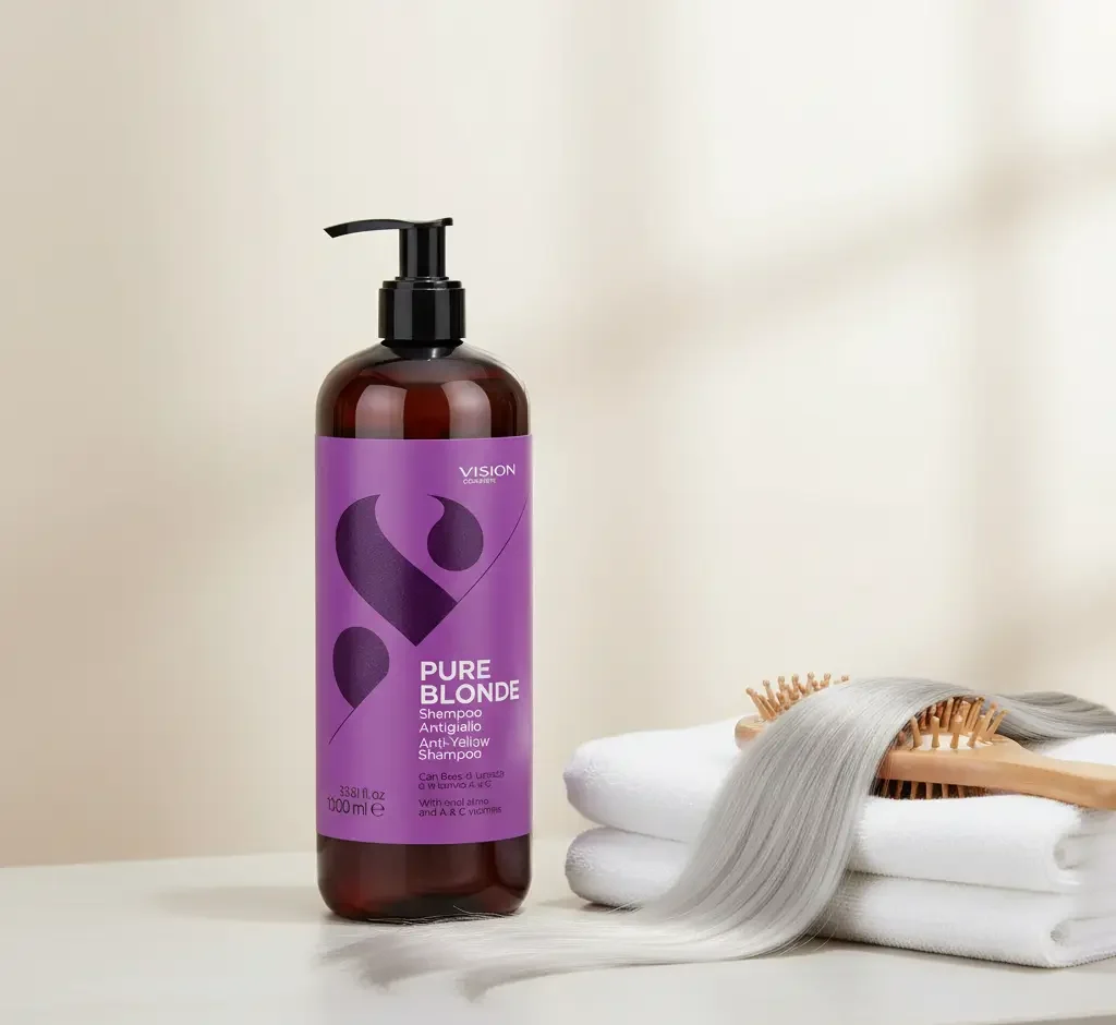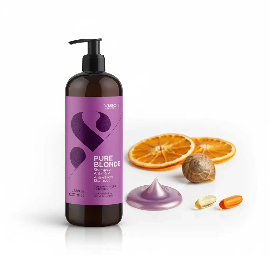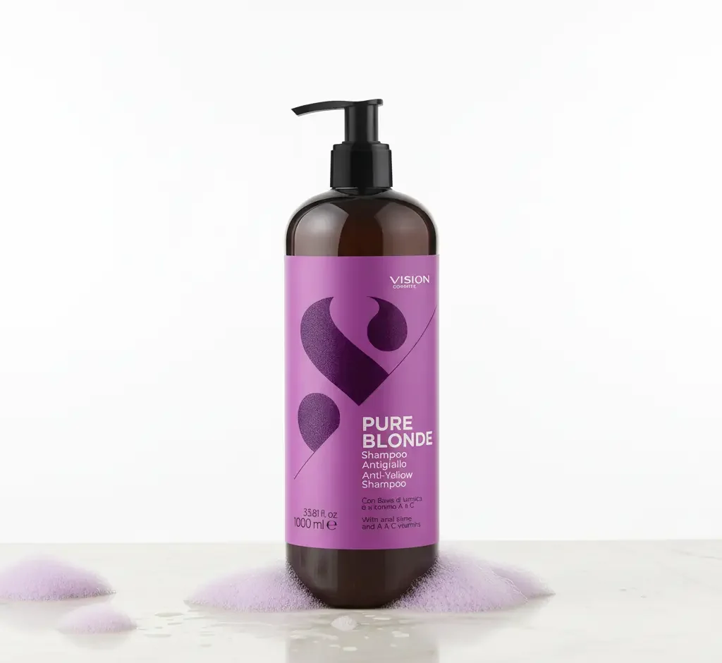 Le Pure Blonde Shampoo de VISION Cosmetic est un shampooing antigiallo professionnel conçu pour neutraliser les reflets jaunes et rétablir la pureté des blonds, gris et blancs. Grâce à sa formule concentrée, il ravive instantanément les tons froids et redonne au cheveu sa luminosité naturelle.